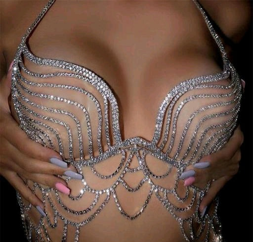 महिलाओं लड़कियों के लिए सेक्सी नाइटक्लब बॉडी चेन बिकिनी स्फटिक बॉडी चेन एक्सेसरी (सिल्वर)