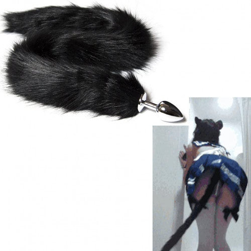 स्टेनलेस स्टील सॉफ्ट फर फॉक्स टेल बट प्लग (काला, सफेद, लाल)