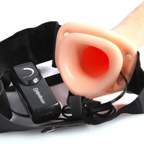 सॉफ्ट बेल्ट के साथ डिल्डो पर वाइब्रेटिंग 7 इंच खोखला पट्टा